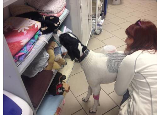 To vše se dělo v narkóze. Ránu ji pak zašili a ven vyvedl dren s odsávací baňkou. V šest večer jsme si Garinku zvedli. Sestřička ji vylovila z klece, kde se probírala z narkózy. Chvilku kvílela a motala se, ale pak zjistila, že je opodál police s plyšáky a začala se o hračky vehementně zajímat. Teď v klidu spí na svém pelíšku a my věříme, že noc bude tentokrát pro změnu klidná.