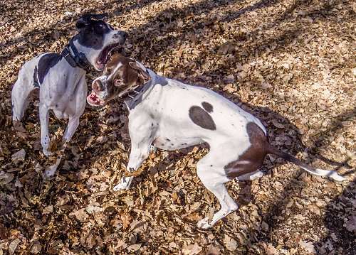 Opravdu se nedá říct, že by se Gari a Nora nepraly. Na procházce jsou dokonce místa, kde se perou vždycky, jako by to byly zápasnické ringy rozmístěné po lesní trase. Jedno zápasiště je v cípu, kde je nedaleko ulice U lesa černá skládka. Je to řídký dubový les a tam se dají očekávat dynamické zápasy. Pak se perou v oraništi někdejší Myší louky, hned u nově vysázené aleje vedoucí ke Šmoulovu. Tohle zápasiště má tu výhodu, že zanechává stopy. Zápasnice vcházejí hnědo, respektive černobílé a vycházejí z kolbiště zemitě hnědé. Finální zápas je pak veden úplně na zpáteční cestě u nás v ulici, než vejdeme na pozemek.