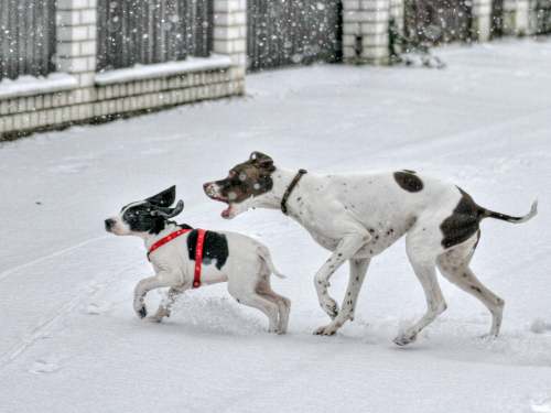Vyrostla. Je menší než Nora, ale svalnatější a má víc energie. Moje obavy se naštěstí nesplnily, neoplácí Noře ústrky. Je na Noru hodná.