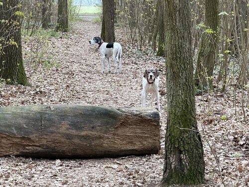 Dnes ráno – novinka. Jakési hovadu s velkou námahou odvalilo kmen stromu tak, aby cestu přehradilo. Kmen musí vážit dva, tři metráky. Je pořádně tlustý a za ta léta co leží v lese nasákl vlhkostí. Zkusím s tím pomocí páky něco udělat. Tak zatím vyslovím temnou kletbu na adresu pachatele. |