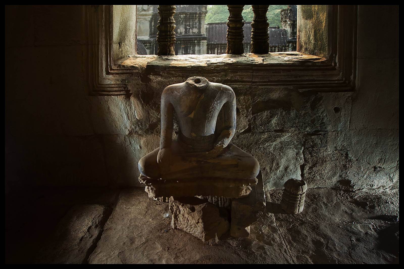 Byli jsme toho dne v chrámovém komplexu Angkor Wat, to je ten nejslavnější ze všech templů celé té angkorské oblasti. Je obehnaný vodním příkopem, přejdete přes mostek, tam musíte ukázat vstupenku, a ocitnete se v čemsi opravdu hodně rozsáhlém, rozlohu to má jistě čtvereční kilometr, možná větší. No a tam jsme fotili, tu se stativem, tu bez něho a najednou, stačilo se otočit, stativ byl fuč.