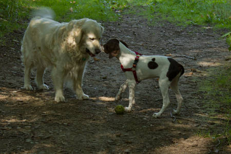 Pak nastala komplikace – Sally našla tenisák. Zde musím trochu odbočit. Sally je hodný pes, ale na hračky si nenechá sáhnout a za dobu našich vycházek jsme měli jediný konflikt s jiným psem, samozřejmě kvůli tenisáku. Tedy, konflikt, ve srovnání s tím, co předváděl Bart, to byl pouhý pidikonfliktík, nicméně nějaké to vrčení a cenění zubů a ohrnování pysku tam bylo.