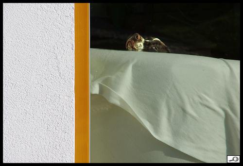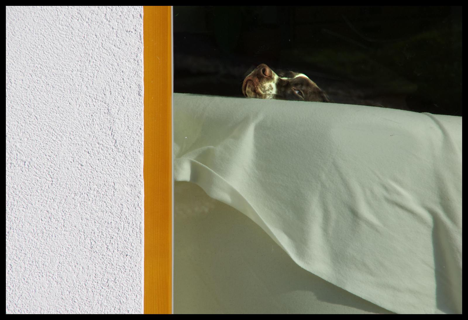 Takže Nora byla vyloučena z pohybu po zahradě a když jsem tam pro svého Digineffa zkoušel zrcadlovku Pentax Kr, velmi nevrlým okem mě sledovala za oknem.