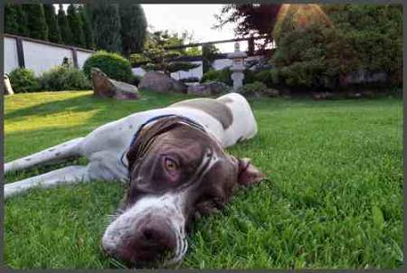 Počkali jsme, až přejdou polední vedra a vypravili jsme se do Černík za Fanánkem. Pravda, tentokrát n Noru ta věta „jdeme za Fanánkem“ nepůsobila tak povzbudivě jako jindy. Přesněji, nepůsobila na ni nijak. Vlekla se za námi jaksi roztekle. Došli jsme kam jsme měli namířeno. Fanánek, pravda, Noru uvítal, velmi důstojně, žádná pranice, žádná honička. No a pak pomaličku šel k průlezu dovnitř do domu, vklouzl tam a už jsme ho neviděli. Uvnitř je chládek.