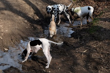 Chvála bohu za mycí kout v garáži. Irisku jsem se něco nanosil do patra do vany! Natáhla vždycky ty svoje špinavé hnáty a hrabala jimi ve vzduchu v naději, že zasáhne stěnu. Ne moc přitažlivá představa, že bych takhle nosil dvě psice, nejdřív Noru a pak Gari... Máme mycí kout a basta.