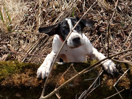 Nestalo se to a doufám že nestane. Onehdy skočila ze zídky do opuštěné zahrady pod úrovní cesty. Taky to byl elegantní kok. Pokusy vylézt nahoru vypadaly podstatně méně elegantně a bez mé pomoci by asi dopadly všelijak. Ale na to“jak zpátky“ se obvykle nemyslí, a to není pošetilost typická jen pro pejsky.