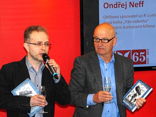 Tady dole na fotce držíme knížku s programovým ředitelem Ondřejem Müllerem, který má na knize nemalou zásluhu, to on si vymyslel Verneffky, osm převyprávěných verneovek, a moje Tajemství na Verneffky přímo navazuje. Takže jsme na Světu knihy knížku pokřtili a od pondělka pokračuju v práci. Uvažujeme i o převodu do comicsu, ale to je věc (snad) nepříliš vzdálené budoucnosti.