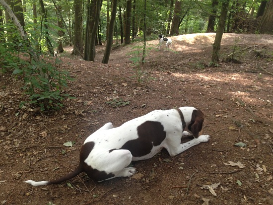 Do Zlatého údolí chodím s Gari a Norou z Černíku, uličkou V rokli. Ta vede rovnou do lesa. Včera, po první stovce metrů, zaběhla Nora stranou do křoví a vrátila se s houskou v tlamě. Hned mě napadlo, že nastane tahanice. Jenže Gari taky někam zaběhla a našla housku. Běžely tedy obě přede mnou, každá se svou houskou v tlamě.