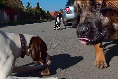 Všechna čest, mladé dámy s ním zacházejí s velkou přísností, zvlášť když jde o kost. Dokázaly ji přenášet a ožvykovat po celou dobu procházky a působit mu Tantalova muka.