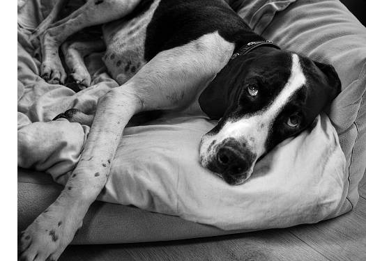 Garinka je na tom líp, ani jí to nešili. Třeba to byl jen nějaký drát, ale kde drát v lese? Dostala antibiotika a občas kulhá a občas běhá normálně. A že by trpěla nechutenstvím, tak to se opravdu nedá říct.
