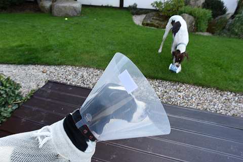 Je to svět plný útrap. Gari má na hlavě kornout, aby si nelízala tlapu, doníž měla vraženou kanylu a hlavně, aby si nevytáhl trubičku, krou z ní odsává odsávačka plyny a tekuté nepřístojnosti. Ráno jsme se s Ljubou dohodli, že půjdeme na procházku separátně – já pojedu na kole, vezmu Noru a ona se vypraví za námi s Gari.