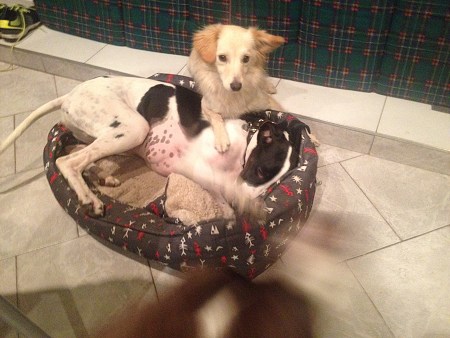 Tak se i stalo v neděli večer u Věry a Pepíka. Fanánek už přestal s Gari soupeřit, ten se odsunul do kuchyně a zaujal polohu moudrého muže, tedy vležmo na gauči. Ale v obýváku má pelíšek Pepinka. Do něho se Gari vtulila, když se unavila zápolením s Norou a běháním po schodech a pronásledováním Bertíka.