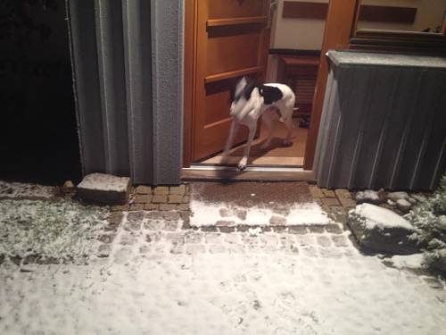 To netrvá dlouho. Vyběhnou a pak už se pohybují v krajině jako bílé tečky po bílé ploše. V lese je to pro mne snazší, jsou to bílé tečky na tmavém pozadí, takže je mám v merku a mohu ohlídat, aby nedělaly neplechu. Bílé tečky se zvolna mění v hnědé tečky a než dojdeme domů, sotva rozezná, která z nich je černobílá Gari a která hnědobílá Nora. Závěrečné dějství dramatu odehrává se u hadice v garáži, u hadice s vlažnou vodou. Situace stejná jako ráno. Postávání, váhání, čekání, zdali si to nerozmyslím. Ale nerozmyslím. Na očistě trvám. Bez váhání!