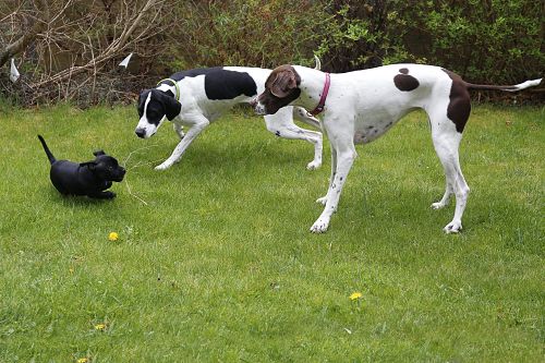 Z hlediska Nory je to opatrnost pochopitelná. Pamatuje si, jak přišla Gari do domu. Nejdřív to bylo velké nadšení a pak poznání, že TOTO tu bude nafurt! Dnes ovšem převládají pocity pozitivní. Bermuda u nás není vůbec, natož nafurt, my navštěvujeme Bermudu, takto hodnotí situaci logická úvaha. Jenže vykládejte něco o logice naší Norině! Gari má k Bermudě méně složité vztahy. Má ráda cokoli, co se pohybuje, přičemž Bermuda se pohybuje pořád, nevyzpytatelnými směry. ![]()