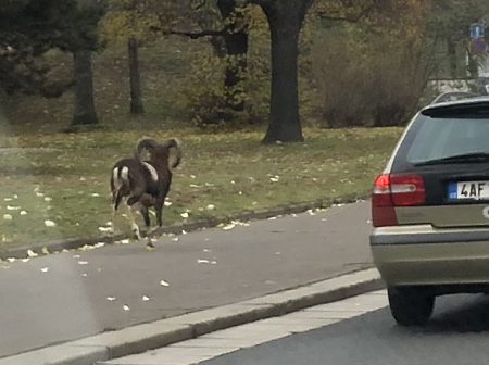 Já ho taky viděl! Jel jsem odpoledne do rádia, po Strakonické a před Železničním mostem jsem zahnul na Hořejší nábřeží. Tam už auta zastavovala a dávala blikačky a já koukám, hele muflon. Stačil jsem ho vyfotit mobilem, jak seběhl z vozovky na trávním a pak nahoru po náspu – na Železniční most! Tam jezdí vlaky co minutu! Zavolal jsem na 158 a řekl jim, co se děje. No a večer jsem se dočetl, že dopadl dobře. Měl tedy hodně dobrodružné odpoledne. On se musel z toho náspu dostat přes Zborovskou (masivně frekventovanou) a přes Nádražní (masivně frekventovanou, auta + tramvaje) na to nádraží. Má o čem vyprávět.