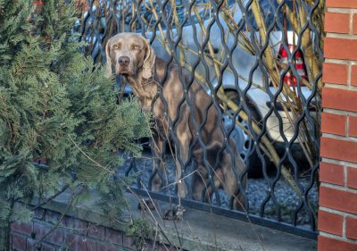Vracel jsem Roníka po pravidelné čtvrteční procházce – podnikáme ji společně, Rony s našimi dámami. Zavřel jsem vrátka a jdu k autu – a mám pocit, že se na mě někdo dívá. A ono taky jo. O kousek dál – skrz krásnou tepanou mříž mě pozoroval veliký pes. Neznám tu rasu, pes měl podivuhodně světlé oči a vypadal ohařovitě. Neštěkal (Norina by se štěkáním potrhala), jen se koukal.