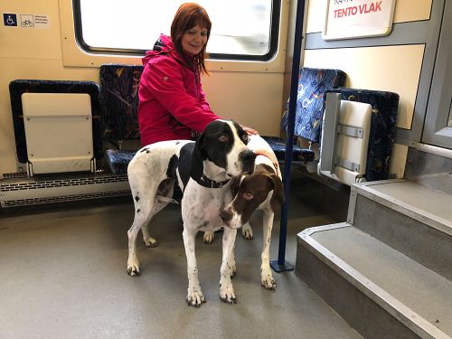 Přinejmenším někteří z nás se ve vlaku hodně báli. Gari měla ocásek stažený až na bříško a Nora by se nejraději pod něco schovala a protože tam nic nebylo, schovávala se pod Garinku. Byli jsme na výletě, šli jsme Posázavskou stezku s Pikovic do Kamenného Přívozu, tam jsme si dali martinskou husu (my lidi, pejskové dostali kůži a knedlíky namočené do omáčky), to vše bylo skvělé, ale pak ten vlak!