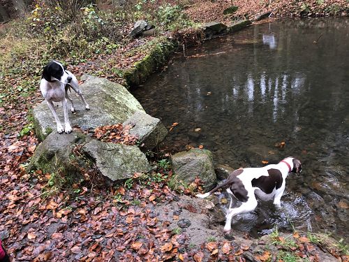 Nora je prokazatelně větší čuně než Gari. Dokáže se zbahnit i za nejhoršího sucha, vždycky někde najde nějaký zdroj bahna a důkladně se jím pokryje. Poctivě se snaží si nános udržet co nejdéle a je opravdu hodně těžké ji nahnat do sprcháče, který máme pro pejsky v garáži.