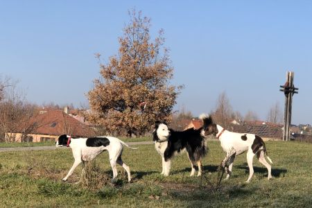 Obřad potkávání má svá pravidla. Hlavní potkávač je Gari. Vidí pejska a hned k němu běží a seznamuje se. Vrtí ocáskem, kroutí se, dává všemi prostředky najevo radost a ujišťuje, že od ní žádné nebezpečí nehrozí. Ani ji nenapadne, že by nebezpečí mohlo hrozit z druhé strany a pochybnosti v tomto směru do ní nevneslo ani několikateré pokousání. Nora přihlíží z dálky. Teprve když Gari cizince prověří, převezme iniciativu. Přiběhne, vrtí ocáskem , kroutí se, dává všemi prostředky najevo radost a ujišťuje, že od ní žádné nebezpečí nehrozí. Cizí pejsek je potěšen. A to naštve Gari a zařve na něho: