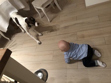 Eliášek už úspěšně leze po čtyřech a když je s maminkou a tatínkem u nás na návštěvě, je to třetí čtyřnožec v rodině. Dobrosrdečná Gari ho bere tak, jak to je – prostě čtyřnožec, a není důvod proč se s ním nekamarádit. Nora je Paní Opatrná. Vypadá neškodně, myslí si Nora. Co když se ale z něho vyklube nebezpečná šelma? Co když se na mě vrhne a kousne mě?
