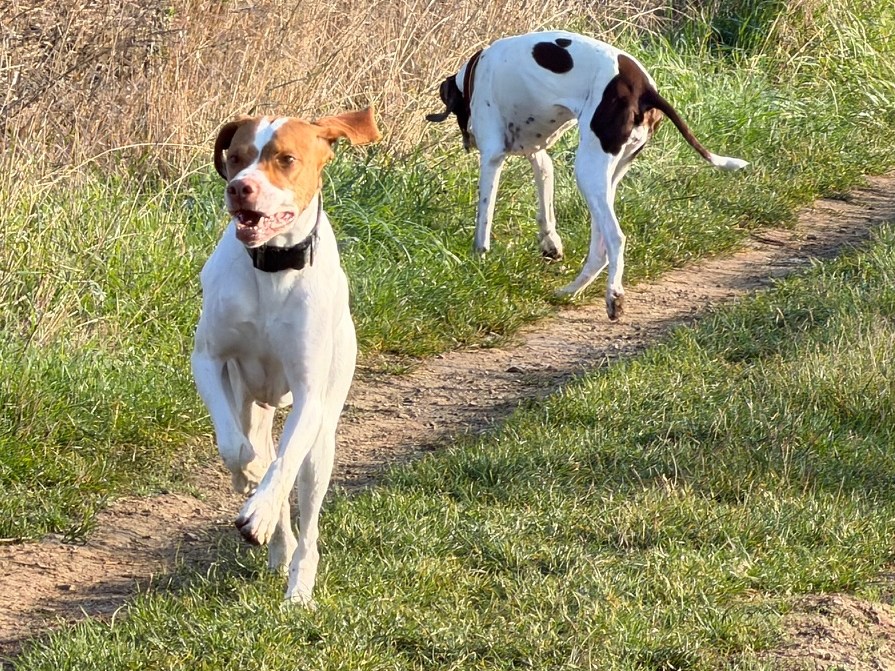 Kdybych neznal pointra Axe a jeho pány a jeho syna, musel bych si myslet, že je to fantom. Umí se zjevit, jako by spadl z nebe. Uslyším dusot a už je to Ax, pozdraví Noru, pozdraví Gari a je ten tam. Připomenu, že je to taky pointr, ale z větve francouzské.